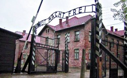 Postal del horror. La entrada del campo de exterminio de Auschwitz, en Polonia, en una imagen de 2003. /EFE