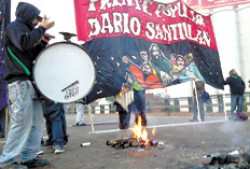 Diferentes organizaciones sociales y políticas cortaron ayer el puente Pueyrredón durante más de doce horas, en un nuevo aniversario de la Masacre de Avellaneda, en la que fueron asesinados por la policía los militantes Darío Santillán y Maximiliano Kosteki. Los manifestantes leyeron un documento consensuado por las diversas agrupaciones convocadas, a través del cual reclamaron “el juicio y castigo a los responsables políticos y materiales de aquella salvaje y criminal represión”.