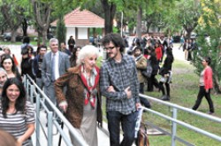 El plan era que la Casa por la Identidad, un proyecto pergeñado por el Ente Público Espacio para la Memoria y los Derechos Humanos, fuese inaugurada por la presidenta Cristina Fernández de Kirchner en ocasión del aniversario que se celebró ayer. Los contratiempos de salud postergaron para marzo el acto oficial. Carlotto recorrió junto al secretario de Legal y Técnica de la Presidencia, Carlos Zannini, la línea histórica que explica cuándo fueron recuperados cada uno de los 109 nietos y nietas que ya saben su verdadera identidad, las gigantografías de “los papás y las mamás”, las que las muestran a las Abuelas en la calle, el compromiso de músicos y artistas. “Nos despierta mucha emoción lo recorrido, pero sabemos que falta mucho”, expresó la presidenta de la organización cumpleañera, quien aprovechó para hablar de las próximas elecciones legislativas. “Ojalá vengan ofertas de la oposición, sanas y posibles, para tener un panorama alentador, pero si sólo se juntan por las elecciones y después se odian en el futuro, no existe nada válido en esa alianza”, opinó. Y alentó a la gente a “pensar en el país”: “La opción está en pensar qué es lo que más sirve para nuestro país, porque a la democracia hay que defenderla con uñas y dientes porque nos ha costado mucha sangre”.