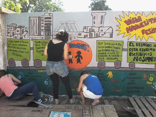 Mural realizado por miembros del programa Jóvenes y Memoria en barrio Tablada.
