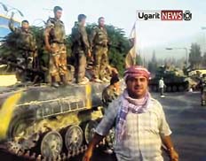 La agencia oficial Sana, que responsabiliza de la revuelta a bandas armadas, anunció que dos militares fueron asesinados por grupos armados en Hama, se incendiaron puestos de policía y se ubicaron barricadas en las calles. La agencia también dijo que un testigo no identificado en Hama denunció que decenas de hombres organizados en bandas armadas están actualmente apostados en los tejados de los principales edificios de la ciudad y aterrorizan a la población disparando sin cesar.