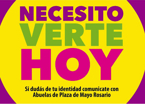 Abuelas de Plaza de Mayo Rosario convoca a todos los que se hayan sacado una foto con el cartel que lleva la consigna Necesito verte hoy, a que la suban como foto de perfil de la red social Facebook durante el transcurso de la Semana x la Identidad, acompañada del hashtag #NecesitoVerteHoy.