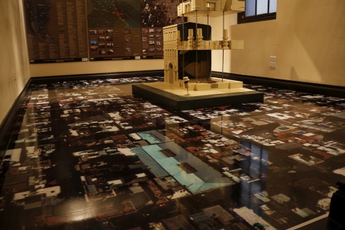 Para completar la instalación original de la sala Reconstrucciones, mediante la cual el Museo informa sobre el entramado de centros clandestinos de detención en el territorio argentino, la arquitecta Alejandra Buzaglo colocó, como soporte de la maqueta del Servicio de Informaciones (SI) de la Jefatura de Policía provincial –emblemático del accionar del terrorismo de Estado en la región–, una imagen en el piso de la sala. Se trata de una foto tomada en el año 2010 que pertenece al Mapa de Cubrimiento Aerofotográfico, cedida por el Instituto Geográfico Nacional, que reproduce el sector de Rosario circundante al SI en escala 1:100 (4 veces menor a la escala de la maqueta). Es así que la textura de la ciudad plasmada en la fotografía es fundamental para intentar acceder a aquello que Pilar Calveiro advierte en uno de los muros de la sala: "Por su cercanía física, por estar en medio de la sociedad, del otro lado de la pared, el campo de concentración sólo puede existir en medio de una sociedad que elige no ver".