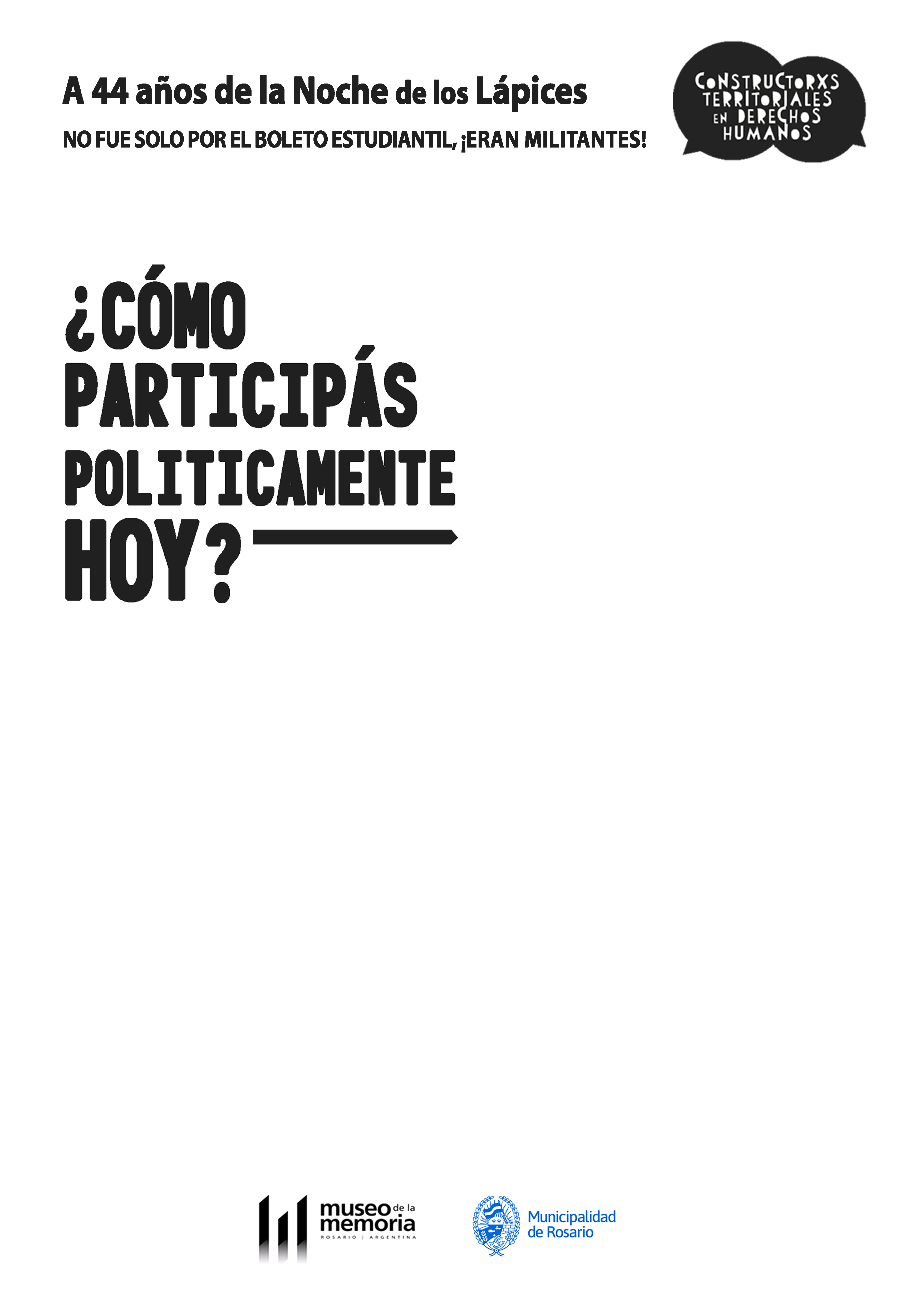 Durante todo el mes de septiembre invitamos a intervenir el afiche que adjuntamos acá con una frase, dibujo, imagen o lo que quieras respondiendo a la pregunta ¿Cómo participas políticamente hoy?