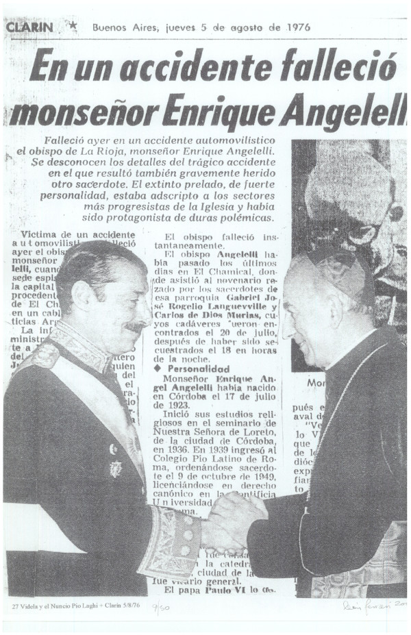Videla y el Nuncio Pio Laghi + Clarín 5/08/76