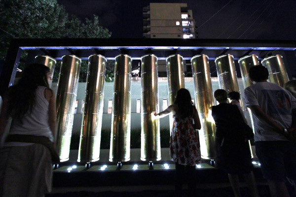 Los pilares de la memoria están inspirados en los cilindros tibetanos de rezos, aquellos que se hacen girar con las manos y nos devuelven una esperanza auspiciosa. En este caso al hacerlos funcionar nos devuelven los nombres de aquellas víctimas y replica como en sus deudos, la eterna búsqueda. Este memorial está dedicado a la memoria de los miles de detenidos desaparecidos en los años de la última dictadura militar. Consiste en un conjunto de pilares de bronce donde se encuentran tallados los nombres de las víctimas del terrorismo de Estado. Los pilares, gracias a un dispositivo giran al contacto con la palma de la mano. Memorial sensible, es la calidez de lo humano la que “pone en movimiento” la evocación de los ausentes.