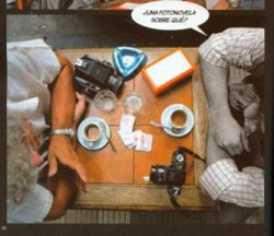 Una viñeta de la fotonovela en la que un fotógrafo sale a retratar el barrio de Once.