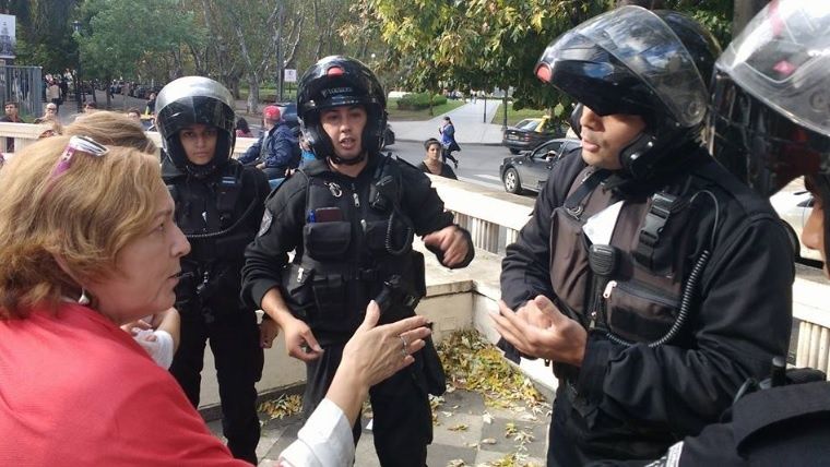 Un grupo de actores se encontraba realizando una intervención teatral, recreando el asesinato de Jonatan Herrera a manos de la policía santafesina, cuando cuatro oficiales de la Brigada Motorizada ingresaron saltando el tapial, de forma ilegal.