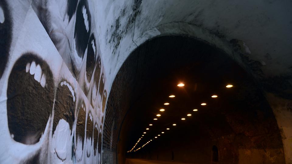 Mágico-Primitiva. Graciela Sacco y Rosario es una muestra que tiene “una parte interior y otra exterior”, como anticipó a Rosario/12 la curadora de la exposición, Belén Ántola, asistente y fiel amiga de Graciela. Además de la muestra en dos de los antiguos túneles ferroviarios que constituyen las galerías del Parque España, Ántola propuso retomar su forma de trabajar usando la ciudad como soporte de su obra. Territorio Sacco es el nombre dado a este conjunto de nuevas recreaciones de las “interferencias urbanas” que Sacco desarrolló en los espacios públicos de diversas ciudades del mundo, Rosario incluida, a partir de los años ’90. Fue una de las pioneras en este género y también en la investigación de la experiencia Tucumán Arde (1968), estudio que llevó a cabo en colaboración con Andrea Sueldo.