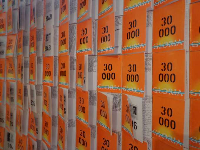 El soporte elegido es el clásico cuaderno GLORIA, de tapa naranja y 24 hojas. Miles de estos cuadernos, numerados, con la foto de cada desaparecido en la primera hoja, luego su nombre repetido en cada página componen la instalación. Fasani comenzó a trabajar en ellos sola: recortar, pegar, escribir, catalogar. Luego comenzaron las jornadas colectivas de escritura, ejercicios de memoria colectiva y colaborativa de los cuales cualquier persona puede formar parte.