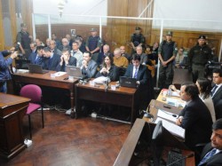 El tribunal, integrado por los jueces Roberto López Arango, Lilia Carnero y Noemí Berros, enjuicia a los ex militares Pascual Guerrieri, Jorge Fariña, Daniel Amelong, Marino González y Joaquín Gurrera, y a los ex personal civil de Inteligencia (PCI) Walter Pagano, Eduardo Costanzo, Ariel Porra, Alberto Pelliza, Ariel López, Juan Cabrera y Carlos Sfulcini, por crímenes en centros clandestinos de la zona, bajo la órbita del Destacamento de Inteligencia 121.