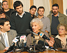Un párrafo aparte dedicó a destacar que la lucha de las Abuelas también es por sus hijos secuestrados y desaparecidos y sus nietos secuestrados, y denunció “pactos de silencio para que a 35 años del último golpe de Estado” no puedan saber “qué ocurrió” con sus hijos y dónde están los cientos de nietos aún por encontrar. “Cuando comenzamos esta lucha, jamás pensamos que estaríamos buscando a hombres y mujeres de más de 30 años, algunos ya incluso padres”, asumió Carlotto, que recordó que la búsqueda de sus nietos comenzó hace tres décadas y media y lamentó que muchos abuelos y abuelas se mueran sin haber podido conocer a su nieto o nieta. “Este delito atroz, permanente, de lesa humanidad, sólo podrá cerrarse cuando los que saben dónde están nuestros nietos tengan la compasión de decirlo. Queremos saber dónde están y recuperarlos”, afirmó, acompañada de integrantes de Familiares de Desaparecidos, Madres de Plaza de Mayo Línea Fundadora, agrupación Hijos y Nietos.