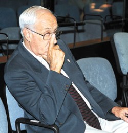 Arriba, los camaradas todavía no se habían dormido, como harían dos horas más tarde. Uno de ellos llegó con un libro llamado Culpas y Castigos. Otro llevaba A cada uno, un denario, de Bruce Marshall. Entre los veinte camaradas en posición de teleespectadores, hubo quienes llegaron de saco y corbata munidos de anteojos con bordes dorados. Y hombres con ropas de batalla, pulóveres raídos y cara de mal dormidos, dedicados curiosamente a escribir en algunas hojas. Uno de ellos dejó el espacio durante el cuarto intermedio para pararse como distraído al lado de un grupo de sobrevivientes en la entrada de un kiosco. Cuando alguien notó su presencia y le clavó los ojos sin disimulo, buscó la forma de alejarse rápidamente. Audiencias atrás, el abogado Rodolfo Yanzón habló de la comunidad de espías que todavía nuclea a los camaradas de armas, una tarea que parece entretenerlos en el transcurso del juicio.