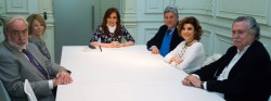 Osvaldo Papeleo, Eduardo Barcesat y Luis Alen presentaron ayer las conclusiones del informe a la ex presidenta Cristina Fernández de Kirchner. En la reunión estuvieron también Lidia y Carolina Papaleo.