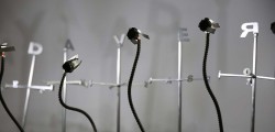Esta instalación se encarna en la frialdad mecánica y metálica e incorpora lo cinético como un dispositivo de escritura. A la manera de una construcción escultórica de gran purismo estético, semeja un altar. El peso de los cadáveres en la historia argentina específicamente recuerda, de alguna manera, este sentido de sacrificio. El movimiento y la proyección en la pared de las letras de doce veletas replican el título de un poema de Néstor Perlongher, «Hay cadáveres», que, si bien se refiere a Evita, abraza a todos los demás muertos que pueblan nuestra historia reciente, tanto en los tiempos de la dictadura como en democracia, muertos principalmente de la época de plomo y de la corrupción o el crimen”. (Graciela Taquini, Académica de Número, ANBA)