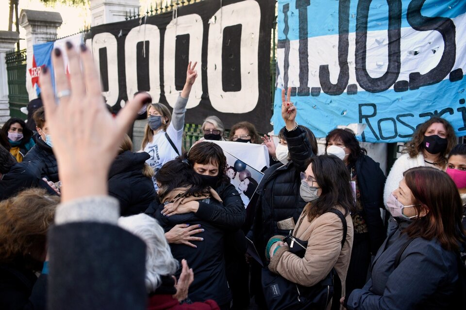 Como los protocolos impuestos por la pandemia hicieron que muy pocas personas pudieran entrar a la sala de audiencias, el momento de la salida de quienes presenciaron el veredicto in situ fue de altísima emoción. Abrazos entre abogadas, abogados, familiares de víctimas, militantes de todas las agrupaciones. Las hermanas y el hermano de Oscar Medina, otra de las víctimas cuya desaparición se juzgó en esta causa, salieron a la vereda entre lágrimas. Héctor "Chinche" Medina, arengó a la pequeña multitud. "Acá no hubo dos demonios, hubo dos proyectos de país. Nosotros tenemos una responsabilidad ante la historia, tenemos que defender la justicia, la memoria, la verdad, y la cárcel común, perpetua y efectiva", expresó.