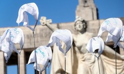 El segundo encuentro fue el del pasado lunes 18 de octubre en el patio escolar donde descubrieron una placa de mármol con el nombre de cada una de las once ex estudiantes, dentro de pañuelos blancos –insignia de las Madres y Abuelas de Plaza de Mayo- y con espacio suficiente para incluir más nombres si encontraran más casos.