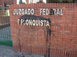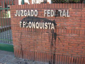 La sede del Juzgado Federal de Reconquista amaneció ayer con una mancha de pintura negra en el frente, similar al impacto de una bomba de alquitrán.