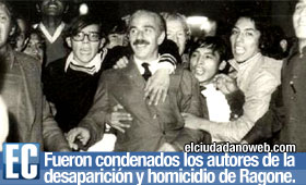 La condena llegó más de 35 años después del hecho, ocurrido el 11 de marzo de 1976, en una ola de violencia que precedió al golpe militar, a metros de la casa de Ragone, cuando se dirigía en su vehículo hacia el hospital San Bernardo, donde se desempeñaba como médico.