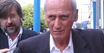 "¿Por qué decidió trabajar como agente de inteligencia al servicio de la dictadura siendo considerado, como lo era en aquel entonces, un ídolo para muchos argentinos?"; "¿Está arrepentido de algo?"; "¿Siente culpa por los delitos que cometió?"; "¿Por qué tenía tantas armas en su casa?"; y "Si es inocente ¿por qué no lo demuestra en lugar de quedarse callado?"; fueron solo algunos de los incontables interrogantes y cuestionamientos que el enviado de Rosario/12 fue soltando a lo largo de los casi cien metros en los que caminó a la par del ex agente de inteligencia –y de la misteriosa mujer que lo acompañó durante su estadía en San Nicolás– sin lograr siquiera inmutar al destintario de los mismos.