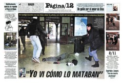 La crónica de la periodista Laura Vales publicada ese día como nota central expresaba: “(...) la policía lanzó el primer gas lacrimógeno y un momento después la gente corría en desbandada. A partir de allí, la represión es un crescendo que se parecía a una cacería”. “Cacería” fue la primera definición de Laura y los fotógrafos de este medio, cuando llegaron a la redacción. Se consignó en el título de la nota (ver imagen). Toda la edición condenaba las responsabilidades políticas del gobierno y desnudaba la brutalidad policial, a contrapelo de la complicidad predominante.