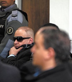 Bulgheroni y Braga llegaron temprano a la sala. Braga con un enorme par de anteojos negros de sol que nunca se sacó. Se tapó con una bufanda a cuadritos durante toda la audiencia esa parte más baja de la cara, marcada por la enorme cicatriz por la que los sobrevivientes siempre lo llamaron Cara cortada. Bulgheroni pasó el tiempo con el cuerpo doblado en dos partes, como escondiéndose de los estandartes de la sala.