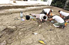 Un grupo de arqueólogos encontró los cuerpos de entre veintiún y veintitrés personas dispuestos en cuatro pozos en una finca del Cortijo de El Marrufo, en la unión de las provincias de Cádiz y Málaga, España.