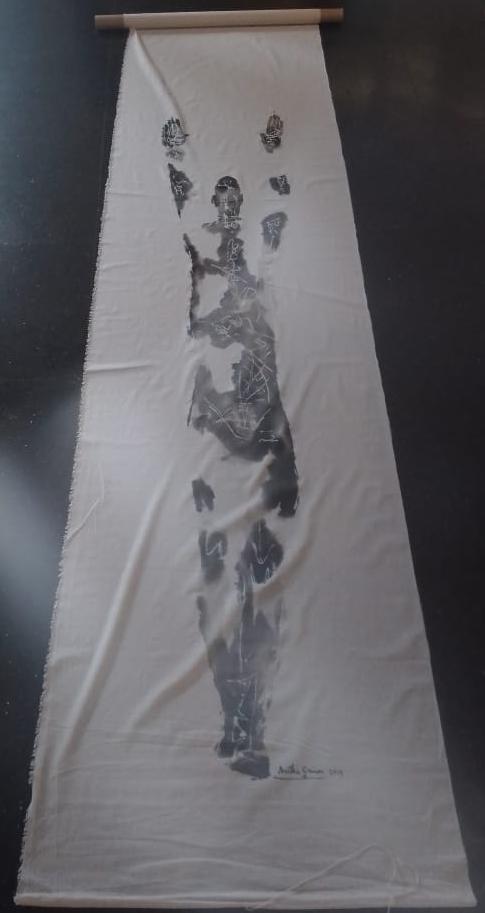 Técnica: Estampado monocromático artesanal sobre tela de lienzo liviano