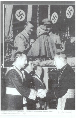 El Nuncio Pio Laghi, saluda a Videla, Massera y Agosti el 07/07/77 + El Nuncio Torregiossa saluda a Hitler