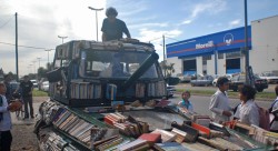 El artista entrerriano Raúl Lemesoff recorre la ciudad con un vehículo adaptado y cargado de libros