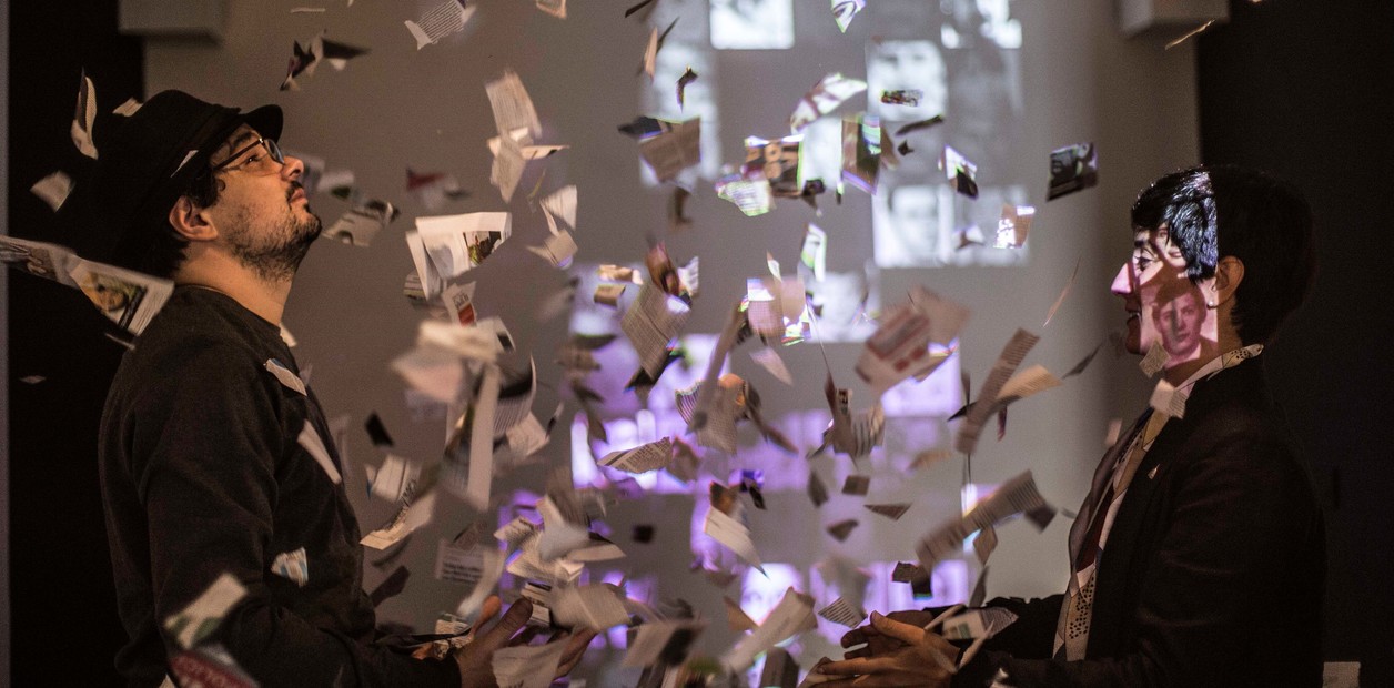 En el Museo de la Memoria de la ciudad, dos momentos históricos de la Argentina entraron en diálogo. Por un lado, un detector de movimiento enriquecido con un software dispara imágenes del archivo de Madres de Plaza de Mayo proyectadas sobre la pared de la sala y sobre los papelitos que desencadenan la acción y multiplican los rostros de los desaparecidos. Desilusiones ópticas, de Leo Núñez, remite al ocultamiento deliberado del Mundial 78 y ejecuta su revelación, en el mismo edificio al que peregrinaban los familiares para saber qué había pasado con quienes no estaban. La obra interactiva tiende puentes con Burladero, de Esteban Alvarez, que toma la forma de un mecanismo de protección para hablar de 2001. Una empalizada de “chapas de zinc batidas al estilo cacerolazo”, como apuntó Marina Aguerre, una de las curadoras generales junto a Liliana Piñeiro, deja ver rostros de los próceres del dólar y una verdad: la necesidad de construir una memoria.